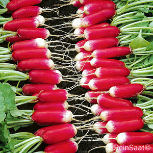 'French Breakfast 3' ist ein altbewährtes, attraktives, rot-weißes Radieschen mit zylindrischer Knolle.