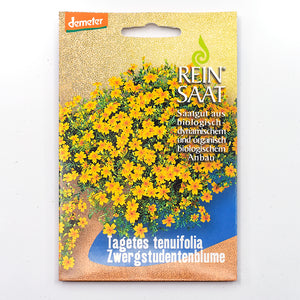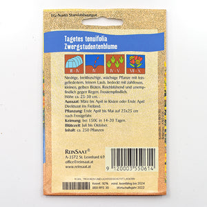 Die Zwergstudentenblume ist eine anspruchslose Pflanze mit zahlreichen zierlichen, gelborangen Blüten. Die Pflanzen erreichen eine Höhe von rund 30 cm und sind Dauerblüher von Anfang Juli bis in den Oktober.